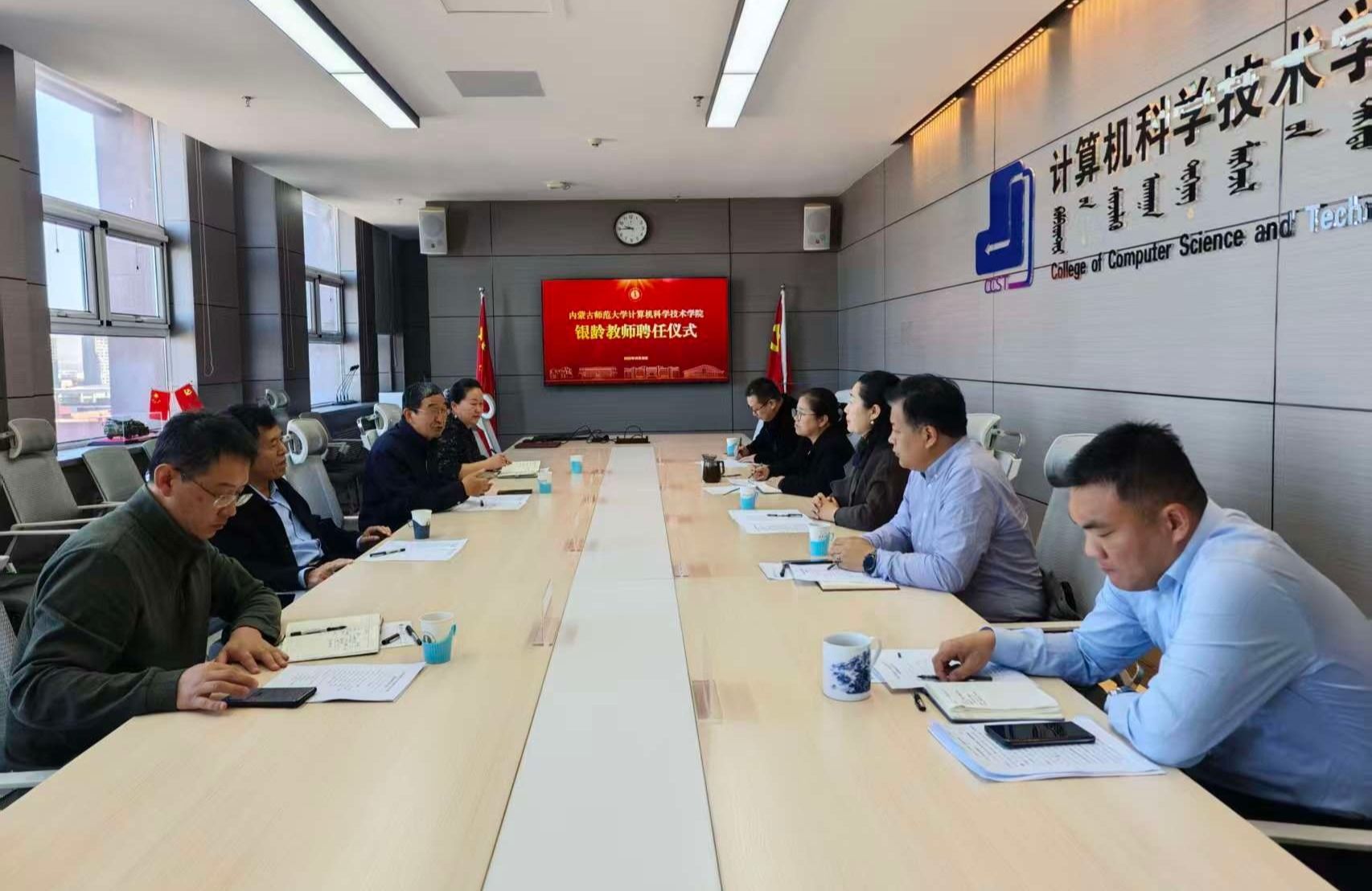 10月30日上午,太阳成集团tyc41183在盛乐校区理工楼A座912会议室隆重举行银龄教师聘任仪式,正式聘请陈兵旗、孙瑞志两位资深教授为学院银龄教师。仪式由学院党委书记乌日其木格主持,校人事处副处长张艳英、人事科科长王白古拉及学院党政领导班子共同参加。