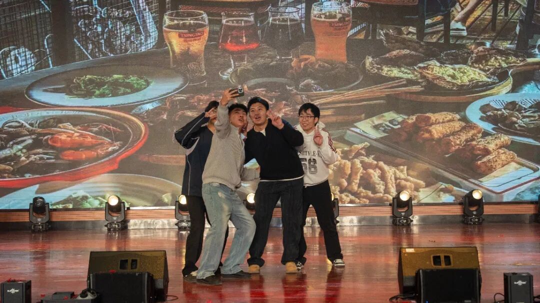 晚会在一场创意独特的幕布剧中拉开序幕,光影交织的视觉语言生动诠释了青春的理想与追寻,迅速点燃了全场氛围。整场演出节目类型丰富、表现形式多元,涵盖舞蹈、歌唱、语言类及乐队表演等多种艺术形式。活力四射的舞蹈串烧以整齐的编排和动感节奏引爆现场;歌舞表演将经典曲目重新演绎,展现青春洋溢的时代气息;深情对唱情感细腻,和声优美动人,营造出温馨而富有感染力的舞台氛围;幽默诙谐的小品围绕校园生活展开,贴近现实的情节设计引发阵阵笑声与共鸣;主题话剧聚焦青年成长议题,剧情层层推进,表演真挚深刻,引人思考;最后,激情四射的乐队表演将现场气氛推向高潮,电声乐器与饱满人声交织,展现出同学们出色的舞台表现力和音乐创造力。