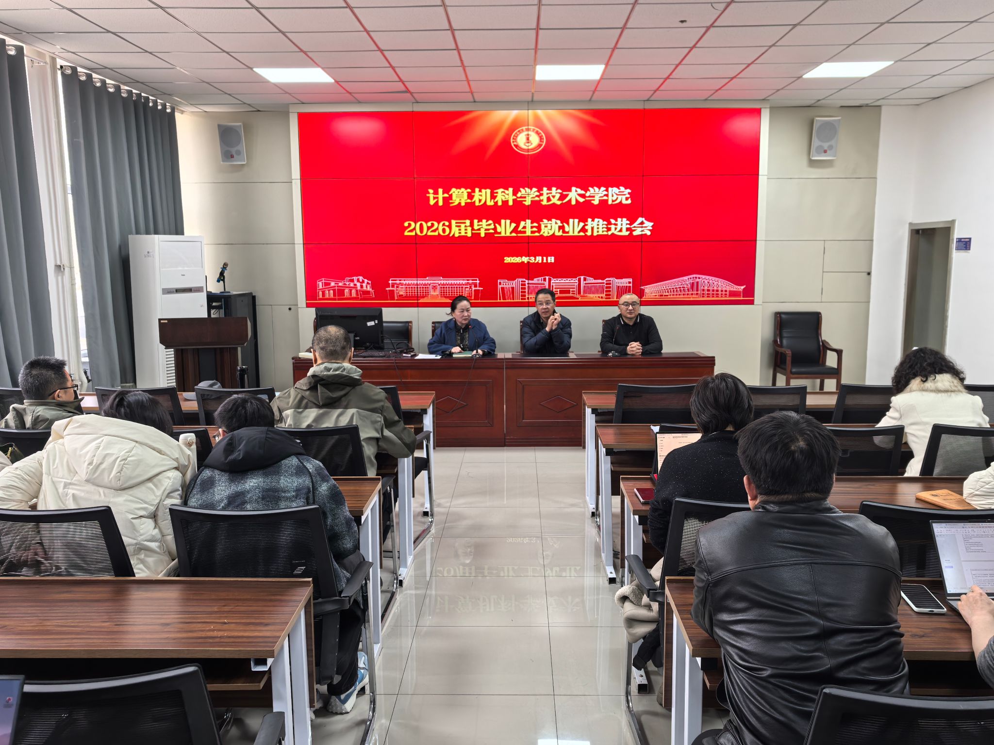 为深入贯彻落实国家关于高校毕业生就业工作的决策部署,进一步分析形势、明确任务、压实责任,全力促进2026届毕业生更加充分、更高质量就业,3月1日下午,太阳成集团tyc41183在大数据楼114会议室召开2026届毕业生就业工作推进会。学院党委书记乌日其木格,院长王海龙,副院长柳林出席会议。全体系主任、辅导员、班主任参加会议。