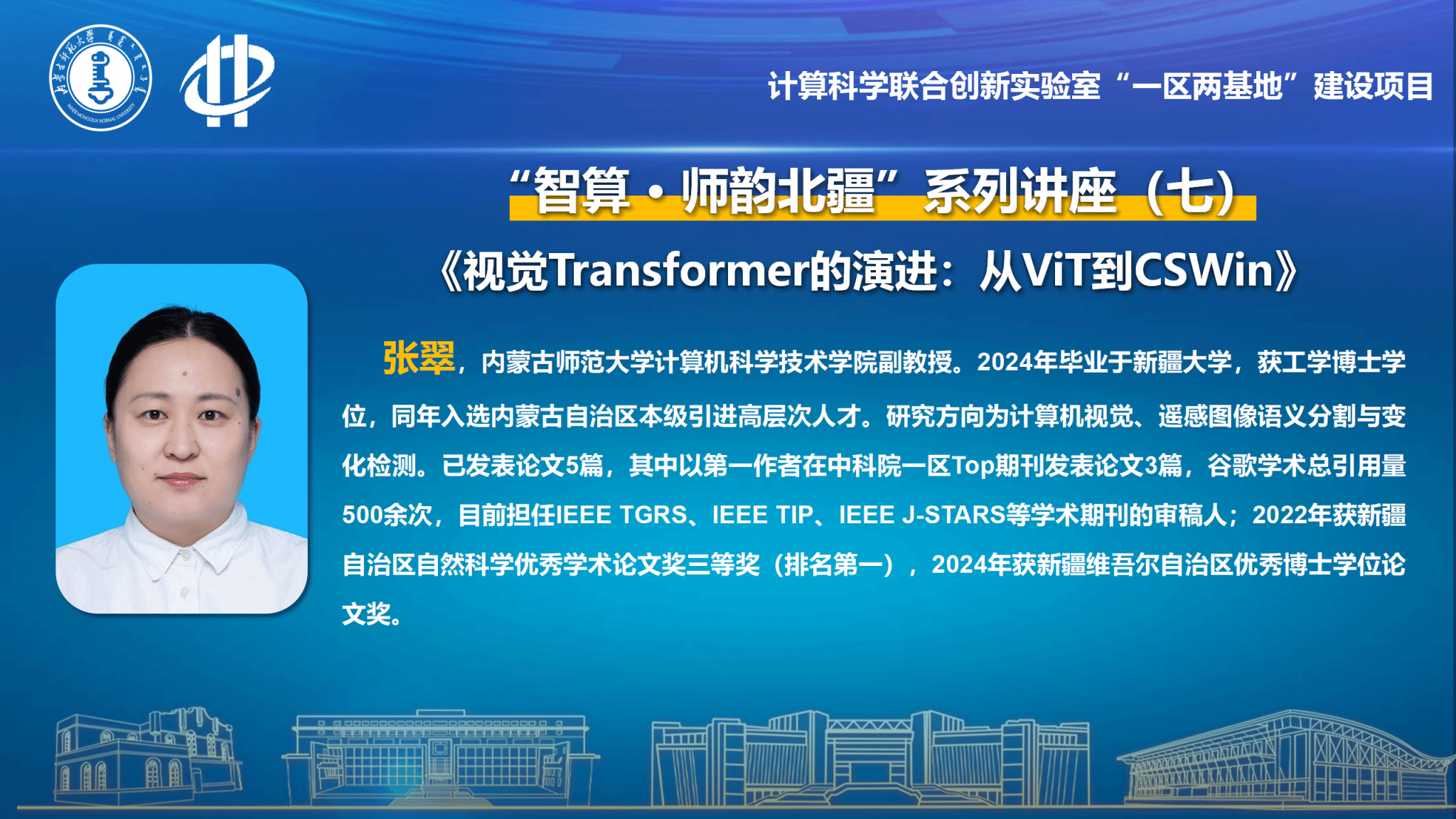 2024年11月21日,太阳成集团tyc41183“智算·师韵北疆”系列讲座第七期于大数据楼114教室顺利举办。本次活动特邀该院张翠副教授担任主讲,以“视觉Transformer的前沿发展及其在计算机视觉中的应用”为主题展开深入讲解。