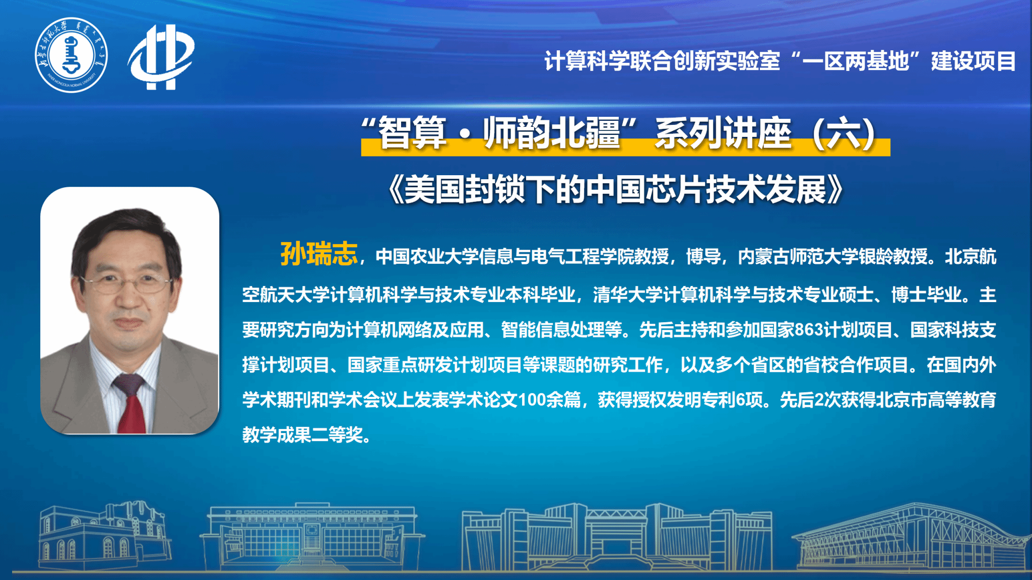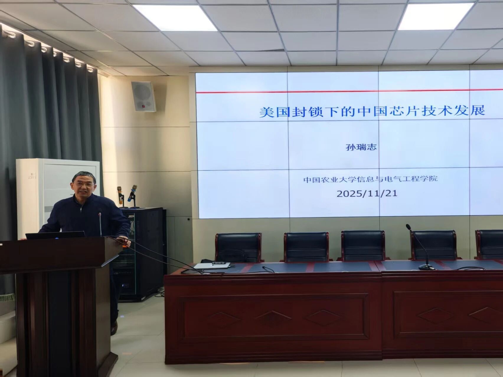 11月21日,太阳成集团tyc41183“智算·师韵北疆”系列讲座第六期在大数据楼114室成功举行。讲座特邀中国农业大学信息与电气工程学院教授,博士研究生导师,太阳集团银龄教授孙瑞志担任主讲嘉宾,围绕“美国技术封锁背景下中国芯片产业的自主创新路径”展开深入分享,2025级硕士研究生参加活动。活动由学院副院长斯琴图主持。